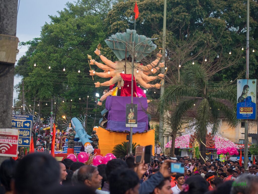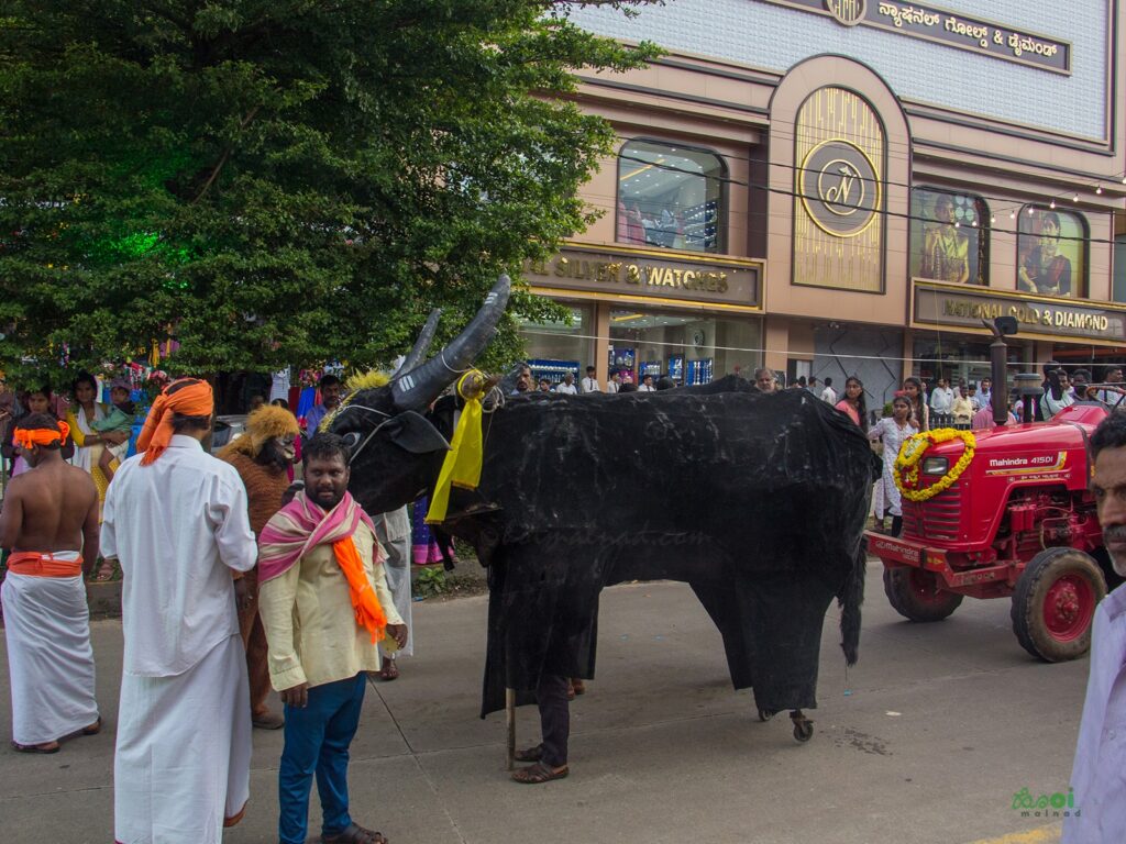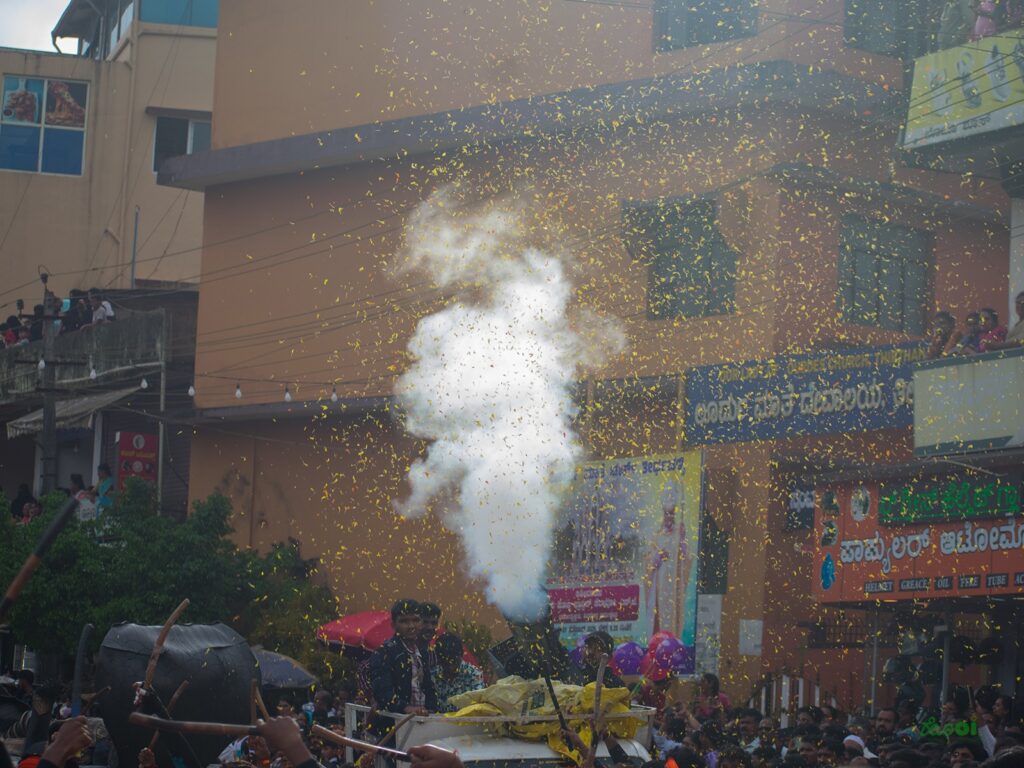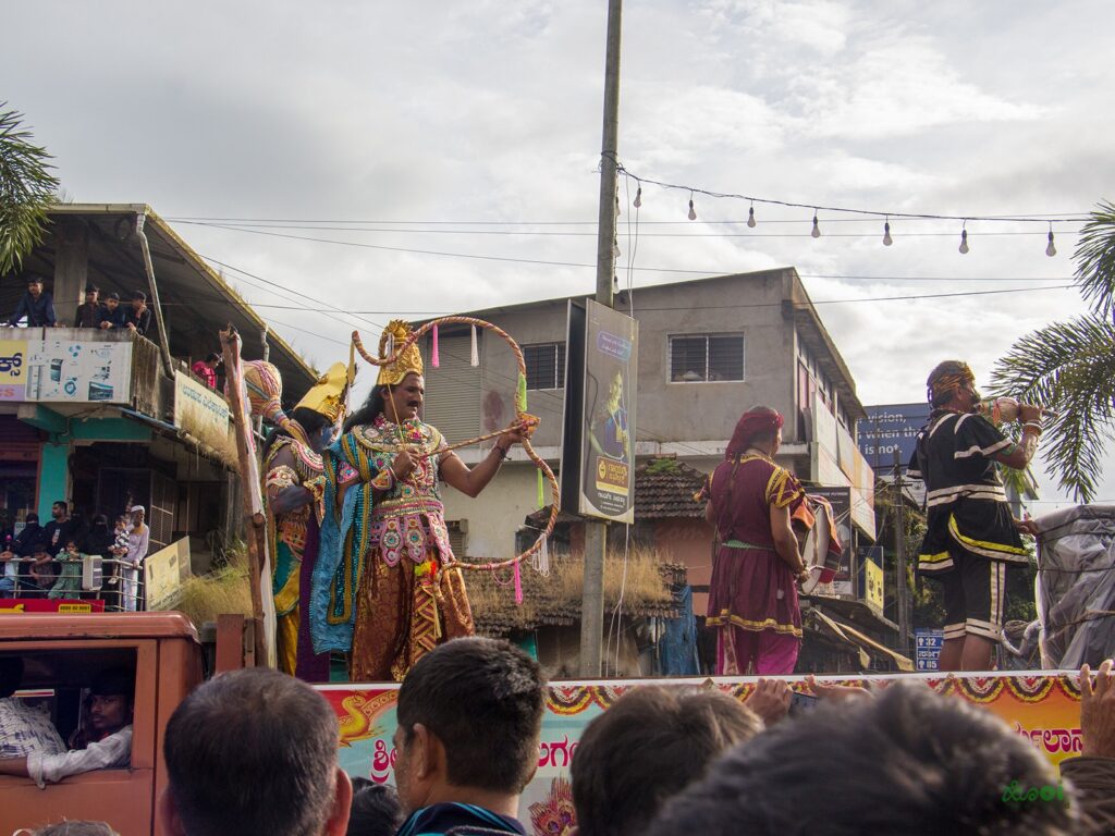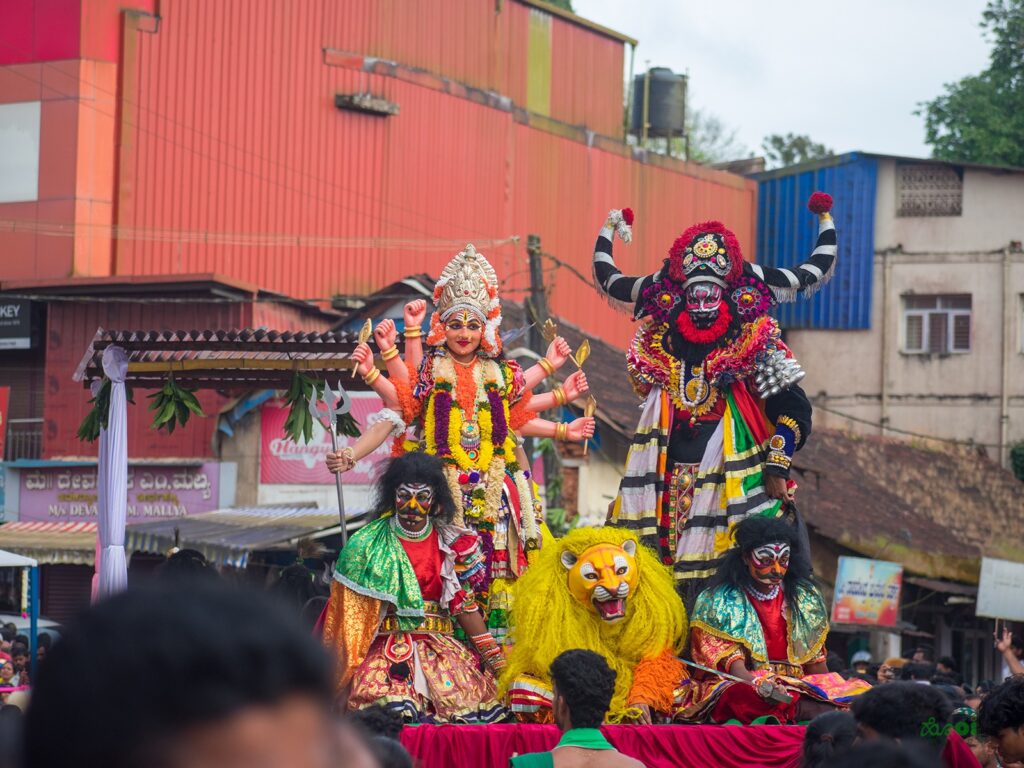 ದಸರಾ ಮೆರವಣಿಗೆಯು ಉತ್ಸವದ ಪ್ರಮುಖ ಅಂಶವಾಗಿದ್ದು, ಇದರಲ್ಲಿ ತಾಲ್ಲೂಕಿನ ವಿವಿಧ ಭಾಗಗಳಿಂದ ಆಗಮಿಸಿದ ಜಾನಪದ ತಂಡಗಳ ಅದ್ಭುತ ಪ್ರದರ್ಶನಗಳು ಜನರ ಗಮನ ಸೆಳೆದವು. ಅವುಗಳ ಜೊತೆಗೆ, ವಿಭಿನ್ನ ಕ್ರಿಯಾಶೀಲತೆಯೊಂದಿಗೆ ಸಿದ್ಧಪಡಿಸಿದ ಸ್ತಬ್ಧಚಿತ್ರಗಳ (Tableaux) ಮೆರವಣಿಗೆಯು ಸವಾರಿಯ ಕೇಂದ್ರಬಿಂದುವಾಗಿತ್ತು.
