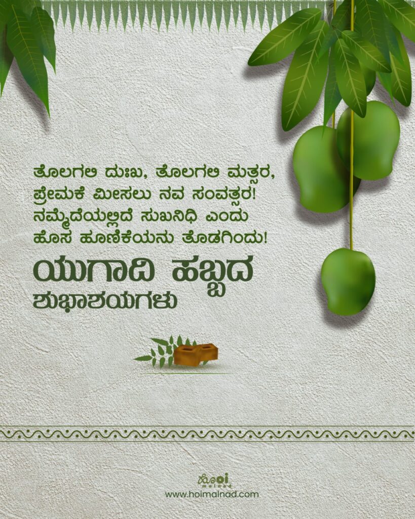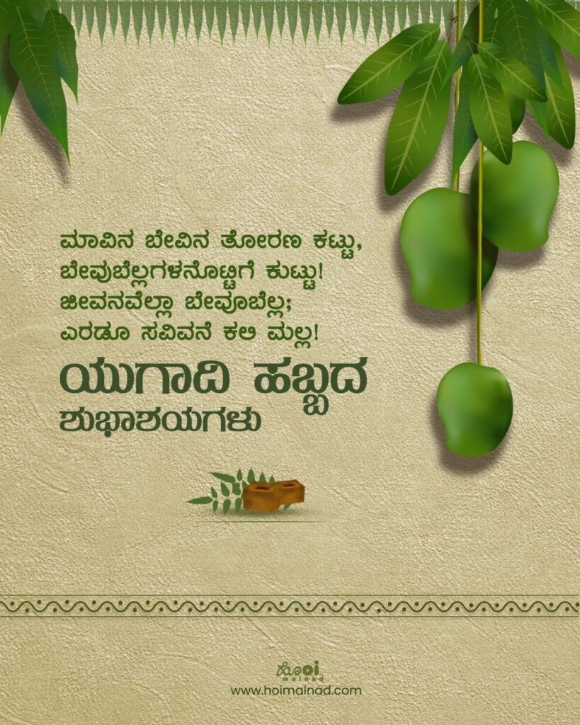 •  ಯುಗ ಯುಗಾದಿ ಕಳೆದರೂ ಯುಗಾದಿ ಮರಳಿ ಬರುತಿದೆ, ಹೊಸ ವರುಷಕೆ ಹೊಸ ಹರುಷವ ಹೊಸತು ಹೊಸತು ತರುತಿದೆ.. ಮತ್ತೆ ಯುಗಾದಿ ಬಂದಿದೆ. ಎಲ್ಲರಿಗೂ ಯುಗಾದಿ ಹಬ್ಬದ ಶುಭಾಶಯಗಳು.